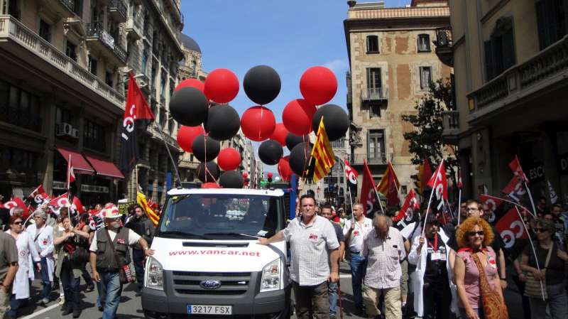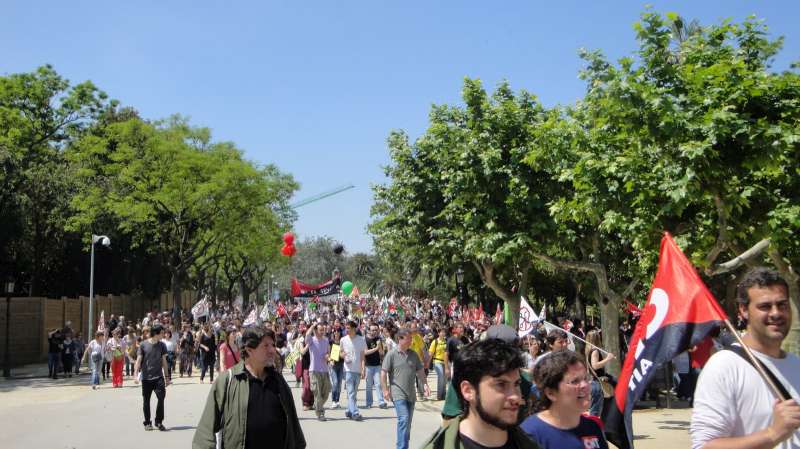 Aquest dissabte 14 de maig desenes milers de persones han sortit al carrer a protestar contra les retallades als serveis públics del govern de CiU. Més enllà de la convocatòria feta per CCOO i UGT i entitats socials afins, la crida diferenciada de la CGT, la CNT-AIT, la COS i moviments socials anticapitalistes, que ha agrupat també diversos milers de persones, ha afegit també el rebuig a la reforma laboral i de les pensions i el compromís a no negociar cap tipus de retallada de drets.