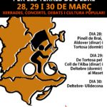 Enguany ja serà lo tercer any que Jóvens de les Terres de l’Ebre organitzem la bicicletada junt amb diferents col·lectius del territori. Sota el lema “Teixint resistències i alternatives a cop de pedal” aquesta tercera edició se celebrarà los pròxims 28, 29 i 30 de març. Emmarcada dins d’un ambient lúdic i festiu no hi faltarà el component de reivindicació i de donar a conèixer les resistències i alternatives que s’estant teixint arreu de les terres ebrenques.
