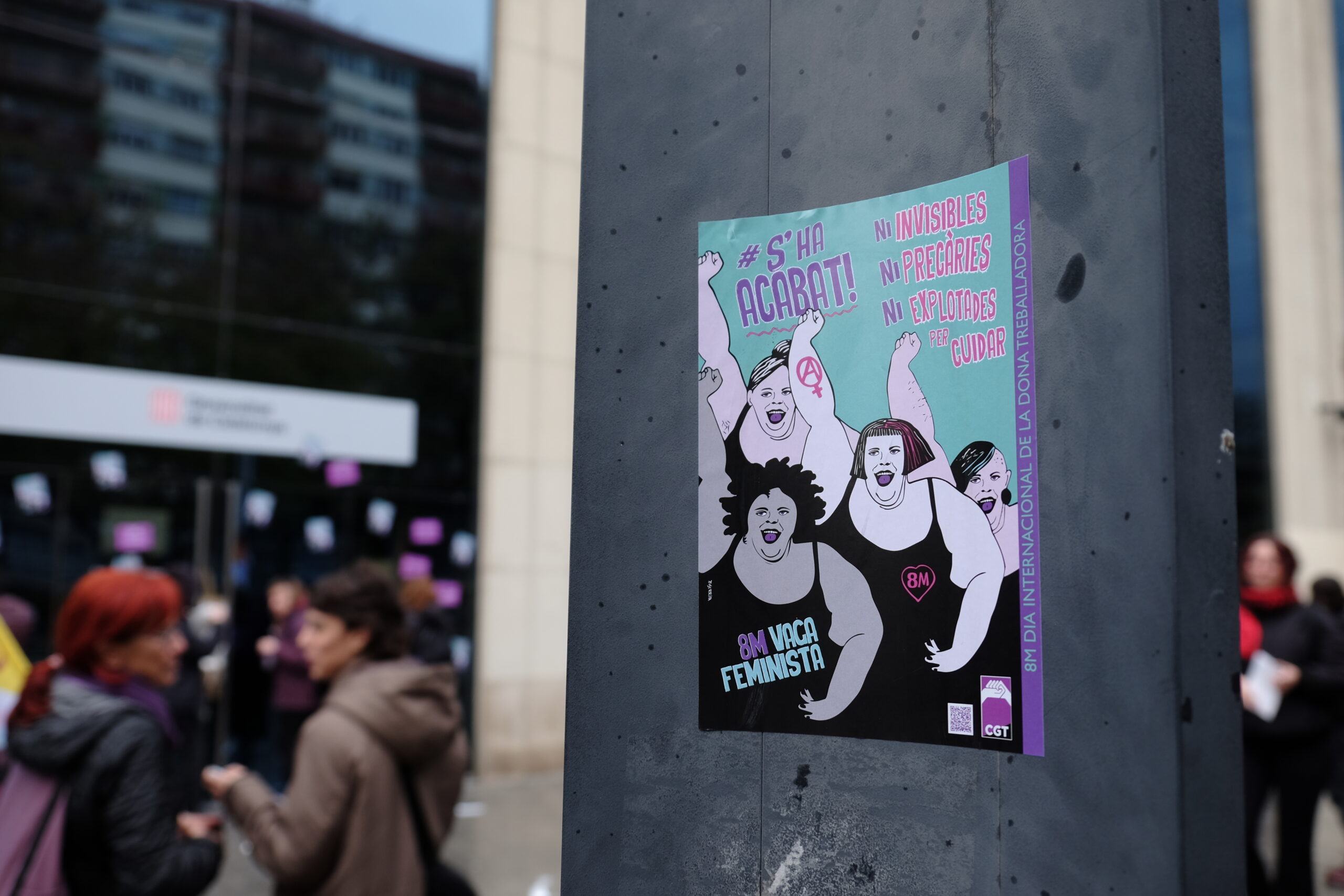 Enguany posem l'accent en una consideració de les tasques de cures com treball, amb dret a remuneració i prestacions contributives independents, mesures de conciliació real i efectiva de la vida laboral, familiar i personal.