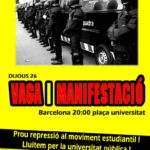 Barcelona. Dijous 26-març. Vaga i manifestació per la universitat pública i contra la repressió!