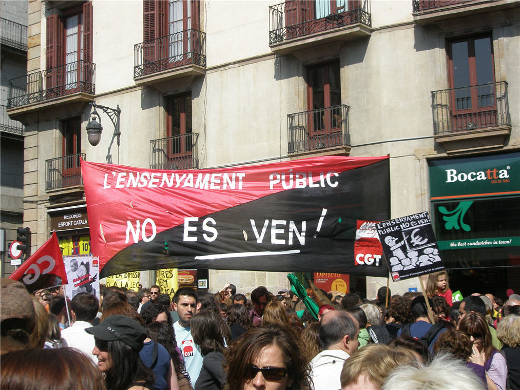 Exitosa i multitudinària jornada de vaga a l’ensenyament públic català el dijous 19 de març, amb 80.000 manifestants a Barcelona i diversos milers més si sumem els de Tarragona, Tortosa, Lleida i Girona. La manifestació de Barcelona ha superat la xifra de les dues jornades de vaga anteriors (el 14 de febrer i el 13 de novembre de l’any passat), diguin el que diguin la guàrdia urbana i la Conselleria que, com sempre, intenten minimitzar-la, amb la col·laboració activa dels mitjans de comunicació que els són afins. Una dada, però, és categòrica i incontrovertible: quan la capçalera de la manifestació arribava a l’alçada de Jaume I, girant cap a la Plaça S. Jaume, la cua encara estava sortint de la Plaça Universitat. És ridícula, i una mostra més de la prepotència del Tripartit, la xifra de 23.000 manifestants que dóna la guàrdia urbana, el cos policial a les ordres del PSC del conseller Maragall i del president Montilla.