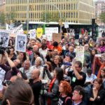 Centenars de persones s'han concentrat davant la Ciutat de la Justícia en suport als periodistes de la revista Cafè amb Llet jutjats per denunciar la corrupció a la sanitat.
