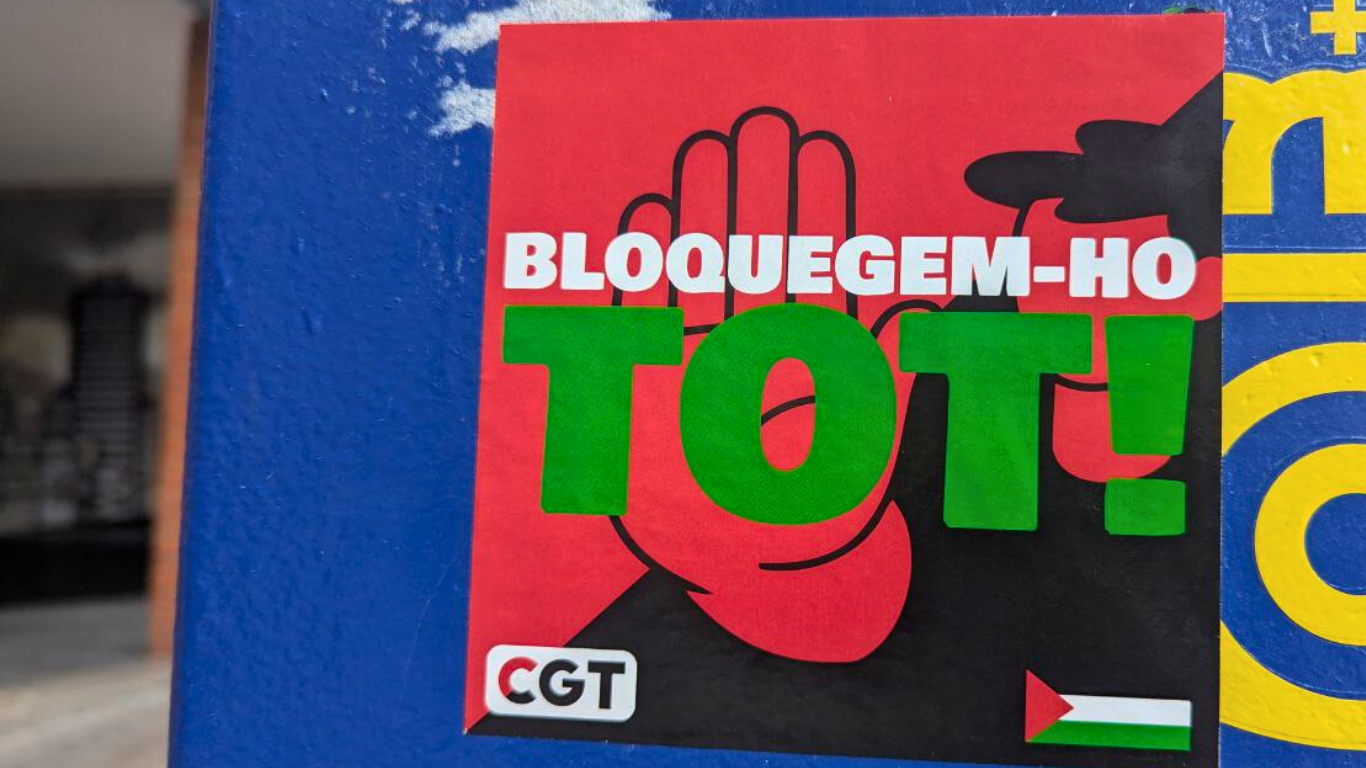 El 15 d'octubre la CGT convoquem una Vaga General de 24 hores a tots els sectors productius de Catalunya. Descarrega, imprimeix, comparteix i difon els materials perquè la vaga arribi a tots els municipis i centres de treball. Aturem el genocidi del poble palestí. Bloquegem-ho TOT!