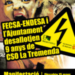 El passat 3 de març, un grup de "matons" de FECSA–ENDESA, sense previ avís ni l’ordre judicial pertinent, han entrat, tirat a terra i destruït el CSO La Tremenda. Els operaris i les tècniques de la demolició han entrat a primera hora i han començat a tirar les parets i trencar tot el material sense deixar que les companyes que s’han presentat al centre social per tal d’aturar la destrucció poguessin entrar a retirar les seves pertinences.