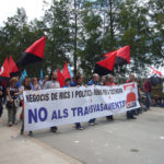 Un centenar de militants de la CGT s'han agrupat darrera una pancarta amb el lema: "Negocis de rics i polítics = ruïna per a tothom. No als transvasaments".